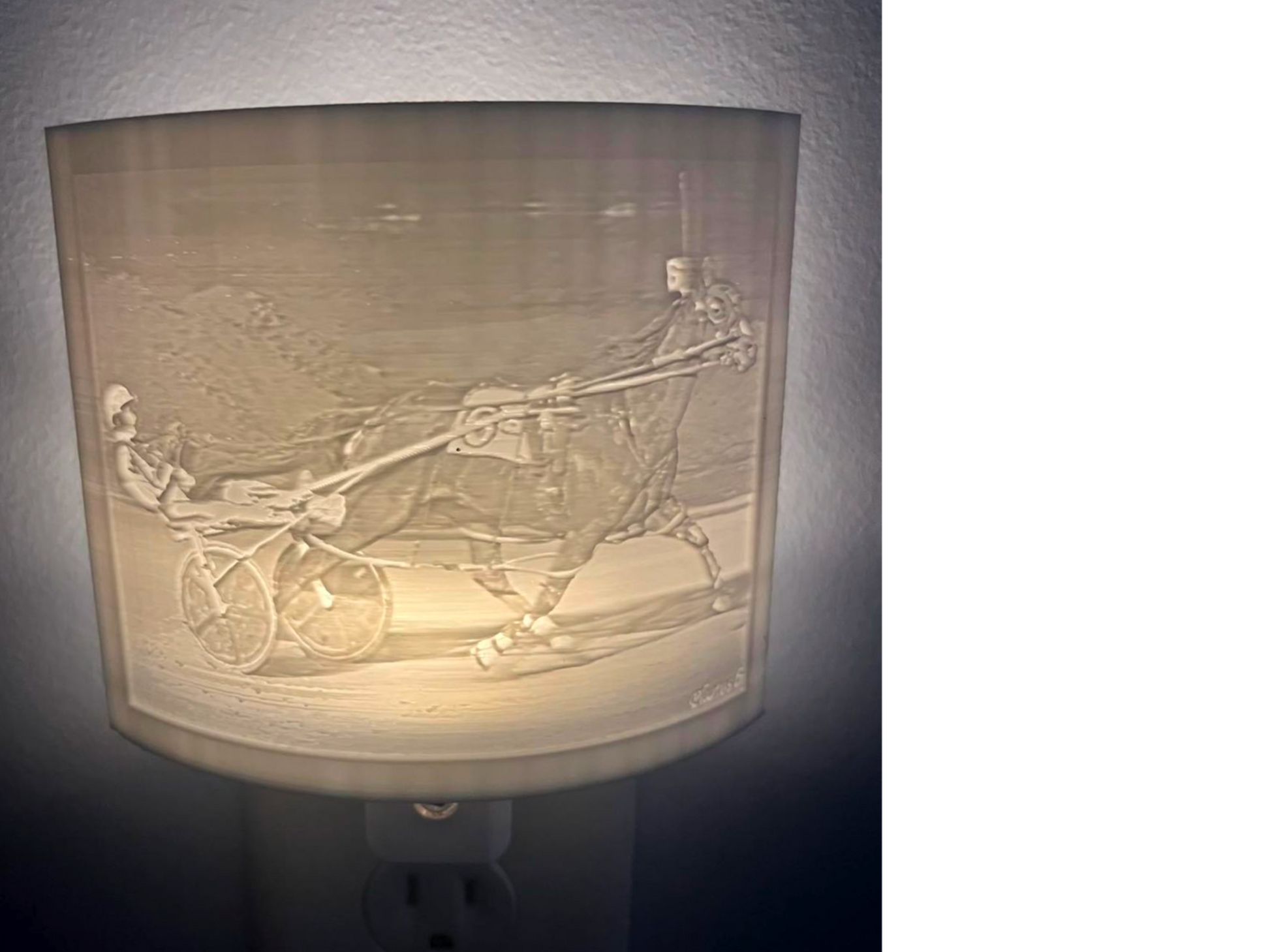 Personalized with your photo, this LED night light automatically turns on and creates a photo-like image. These lithophanes are 3D printed and are made of PLA plastic.